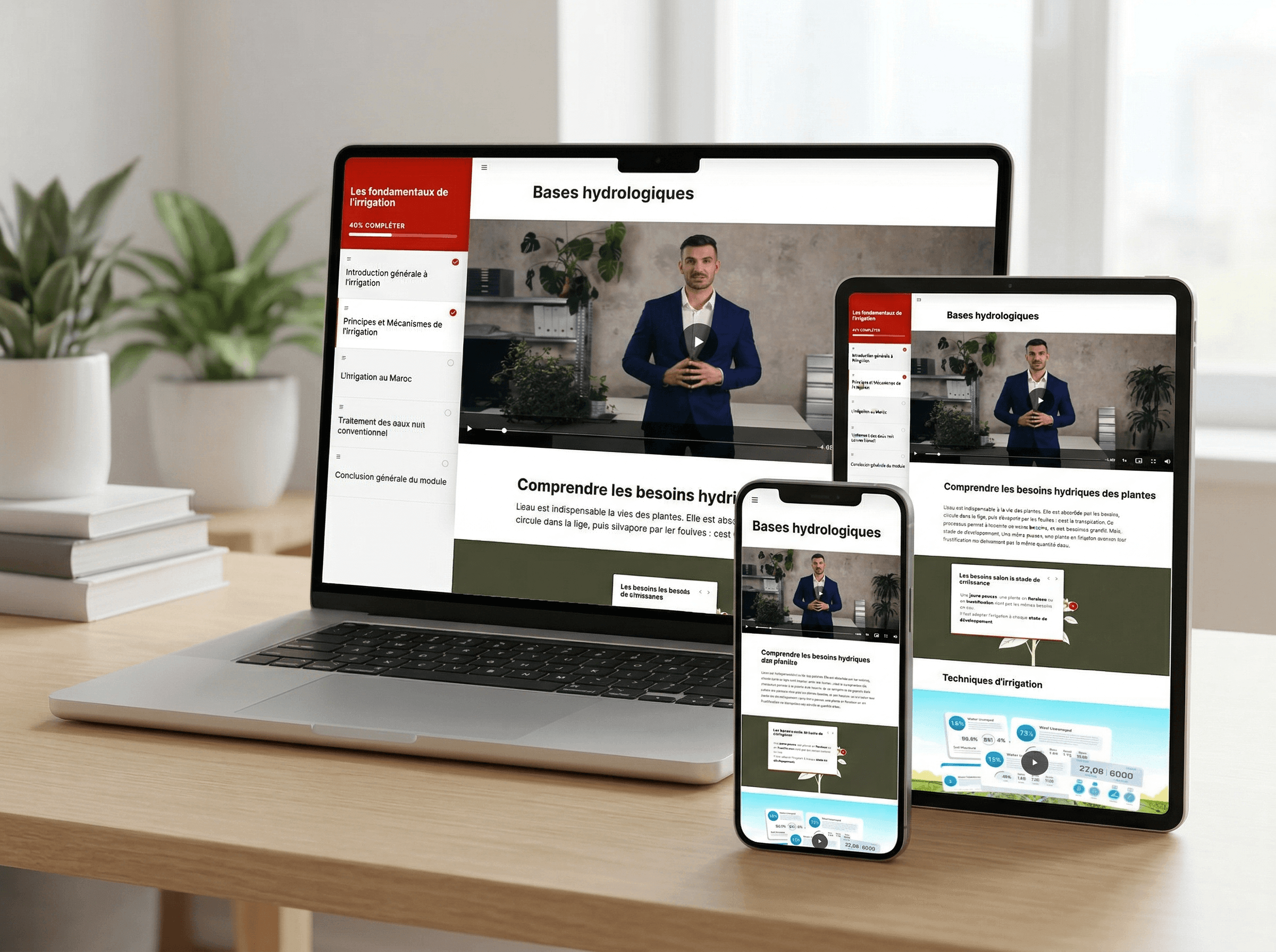Parcours de formation complets combinant vidéos pédagogiques, activités d'assimilation, quiz interactifs et études de cas. Structurés en chapitres pour une progression logique, accessibles à tout moment.